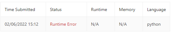 ํด๋น ์ฝ๋๋ฅผ ์ ์ถํ๊ฒ ๋๋ฉด ์๋์ ๊ฐ์ด Runtime Error๊ฐ ๋ํ๋๋ค. ๐ฅ