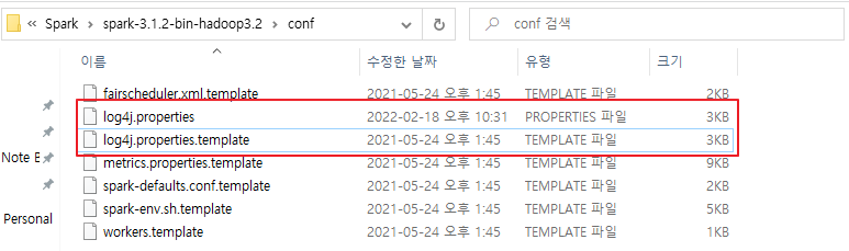 만약 경로에 해당 파일이 없다면 log4j.properties.template를 복사하여 뒤에 .template를 지워주고, 만들어준다.