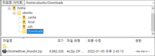 # Downloads 폴더에 크롬드라이버.zip 파일을 다운로드한다.